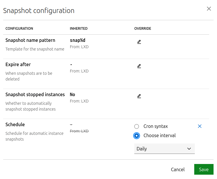 lxc config set <instance_name> snapshots.schedule @daily